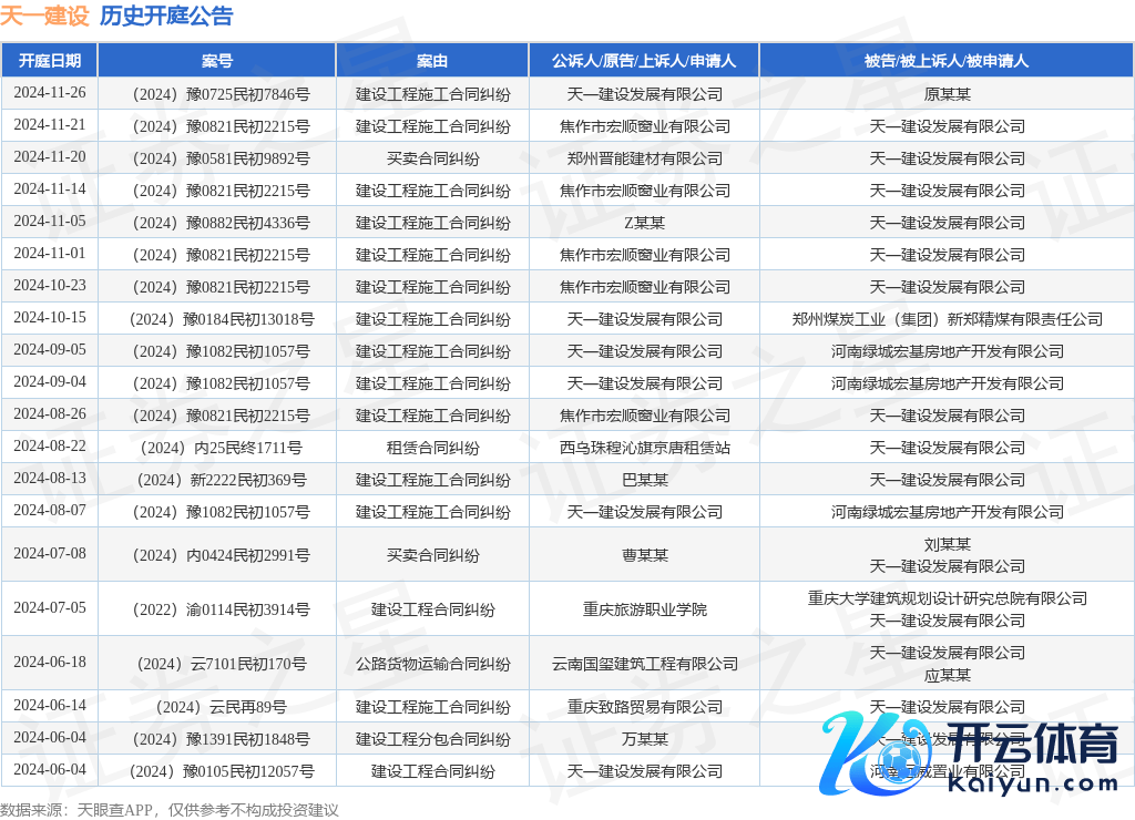 本站音问开云体育(中国)官方网站,凭证天眼查APP深刻,近日公布了一则天一开导发展有限公司行为原告/上诉东谈主的开庭公告,堤防本色如下: