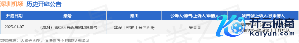 本站音信,阐发天眼查APP显现,近日公布了一则深圳市机场(集团)有限公司行动被告/被上诉东谈主的开庭公告,详备本色如下: