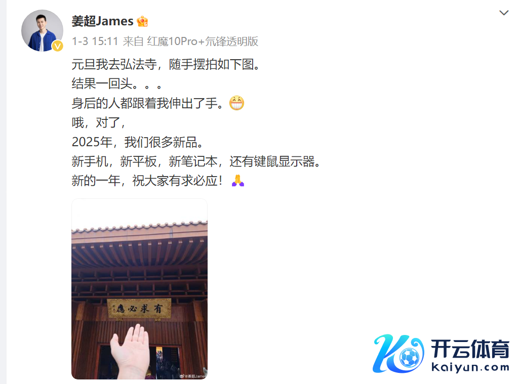 跟着时间来到2025年云开体育,不少新品也行将到来。 日前,红魔游戏手机居品总司理@姜超James 发文露出,2025年红魔将发布手机、平板、条记本、键鼠炫夸器等新品。 同期,其在挑剔区中报恩了部分网友留言:针对是否会推出7英寸游戏手机粗略8英寸高树立游戏平板,他报恩称“望望我相片上的四个字”;针对红魔电竞平板Pro录屏待优化的情况,他示意“鼓舞中”。 概述来看,红魔有望在本年推出7英寸游戏手机或8英寸游戏平板,以闲散不同玩家关于游戏确立尺寸和性能的需求。同期条记本、键鼠炫夸器也将迎来新品。