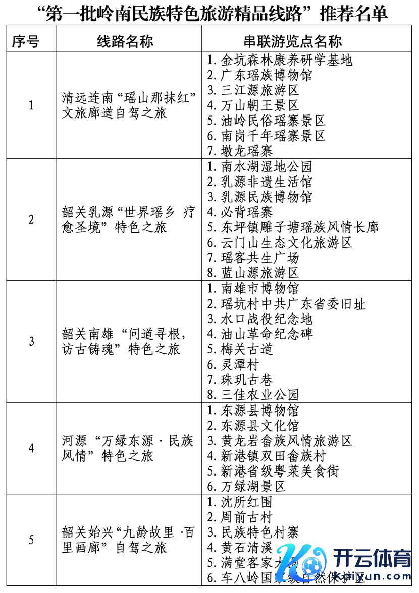 1月23日,广东省民族宗教委、广东省文化和旅游厅相接公示“第一批岭南民族特质旅游极品澄清”推选名单云开体育,触及5条澄清共35个游览点。公示期自2025年1月23日至2025年2月5日(共5个责任日)。