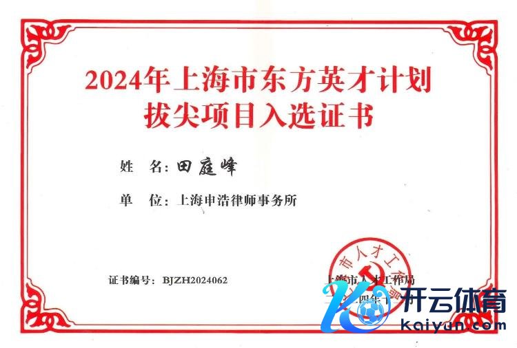 近日,上海市东说念主才职责局公布了2024年上海市东方英才方针入选名单,申浩讼师事务所主任、创举搭伙东说念主田庭峰入选2024年上海市东方英才方针拔尖神气。