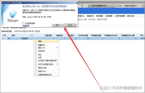 在软件里操作复制时,会弹出“是否要允许此Web欺诈智商窥察您的剪切板?”的教唆。要是点击“否”,则无法常常完成复制。 问题原因 silverlight将剪切板建筑成了阻隔。 惩处设施 运转--系数智商--找到silverlight智商--权限--剪切板建筑为允许即可。 今天的共享就到这里,您齐学会了吗?咱们下期邂逅! 管家婆|管家婆软件|苏州管家婆|苏州管家婆软件|昆山管家婆|昆山管家婆软件|太仓管家婆|太仓管家婆软件|常熟管家婆|常熟管家婆软件|管家婆工贸版|管家婆软件工贸版|管家婆后光版|